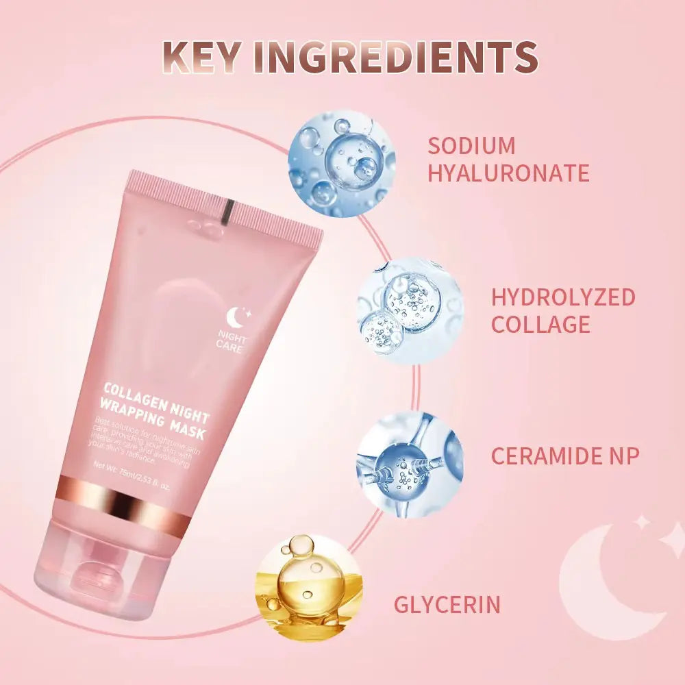 Collunea Collagen Night Wrapping Mask locks in moisture while you sleep for a visibly smoother, bouncier complexion by morning.