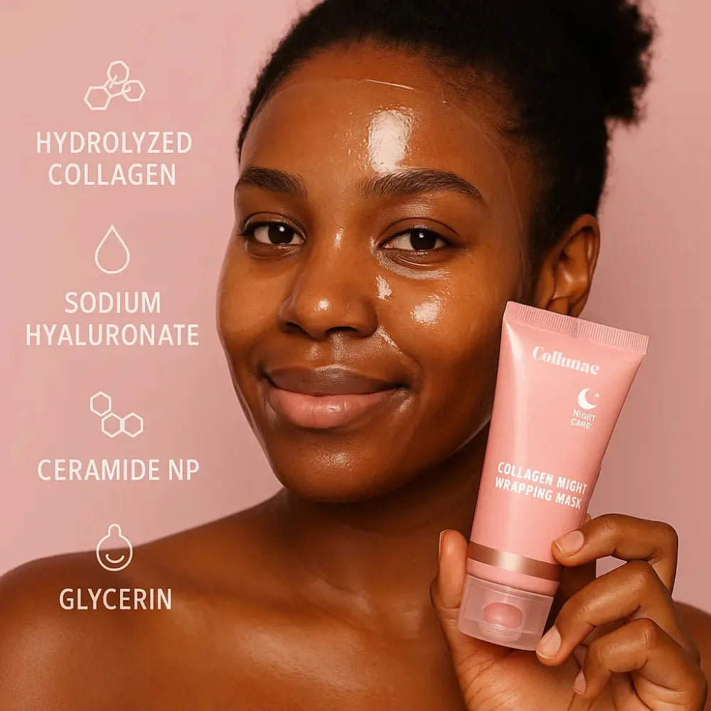 A collagen night wrap with HA, glycerin, and ceramide NP locks in moisture so skin wakes up smoother, firmer-looking, and radiant—without heaviness.